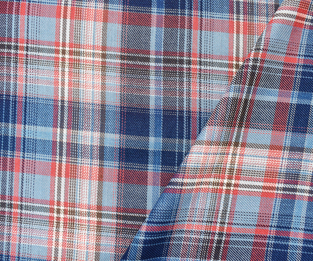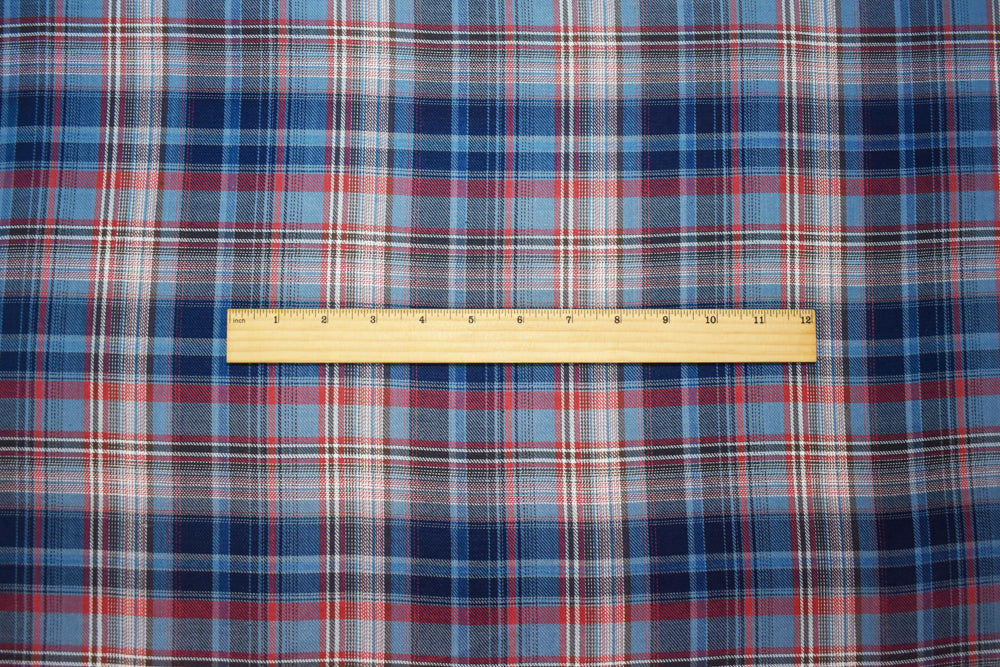 Red-Blue-Multi Cotton Famous Maker Plaid Twill Woven Fabric