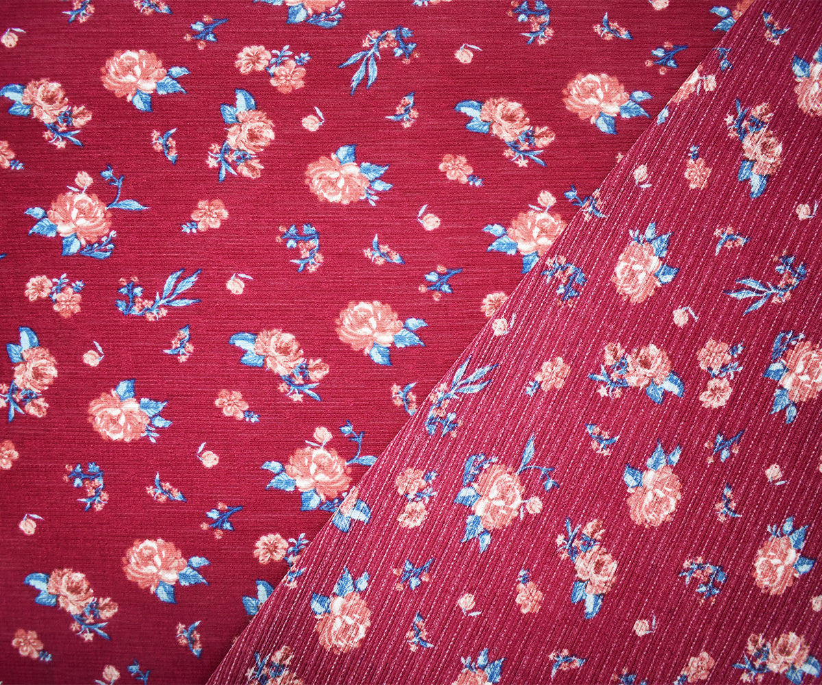 -Red-Blue-Multi Poly Stretch Spandex Floral Printed Slub Knit Fabric