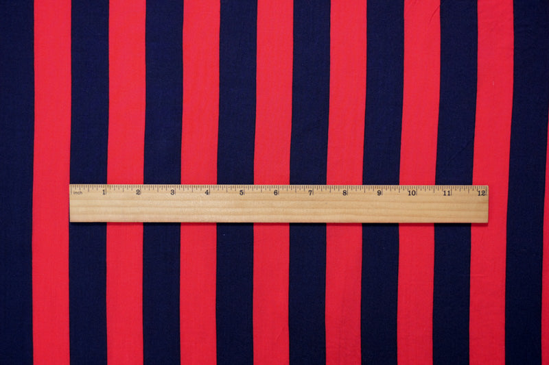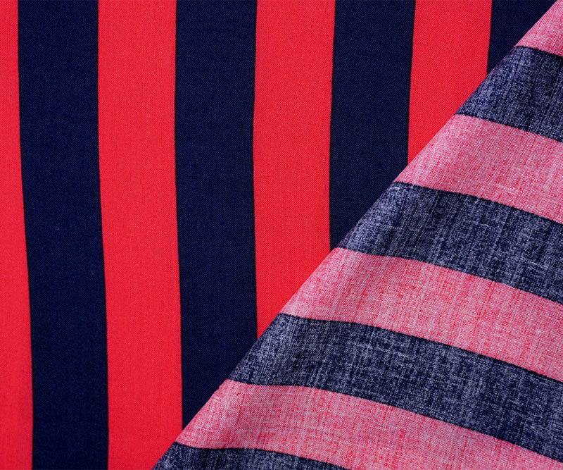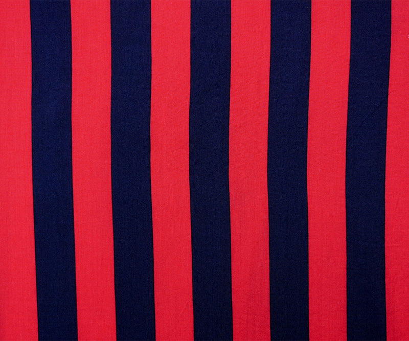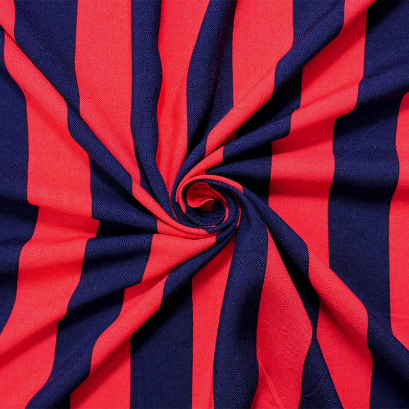 Red-Blue Rayon Stripe Printed Challis Woven Fabric