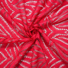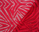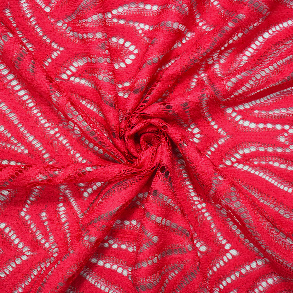 Red Cotton-Polyester Abstract Crochet Lace Knit Fabric