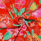 Red-Green-Multi Poly Floral Printed Georgette Woven Fabric