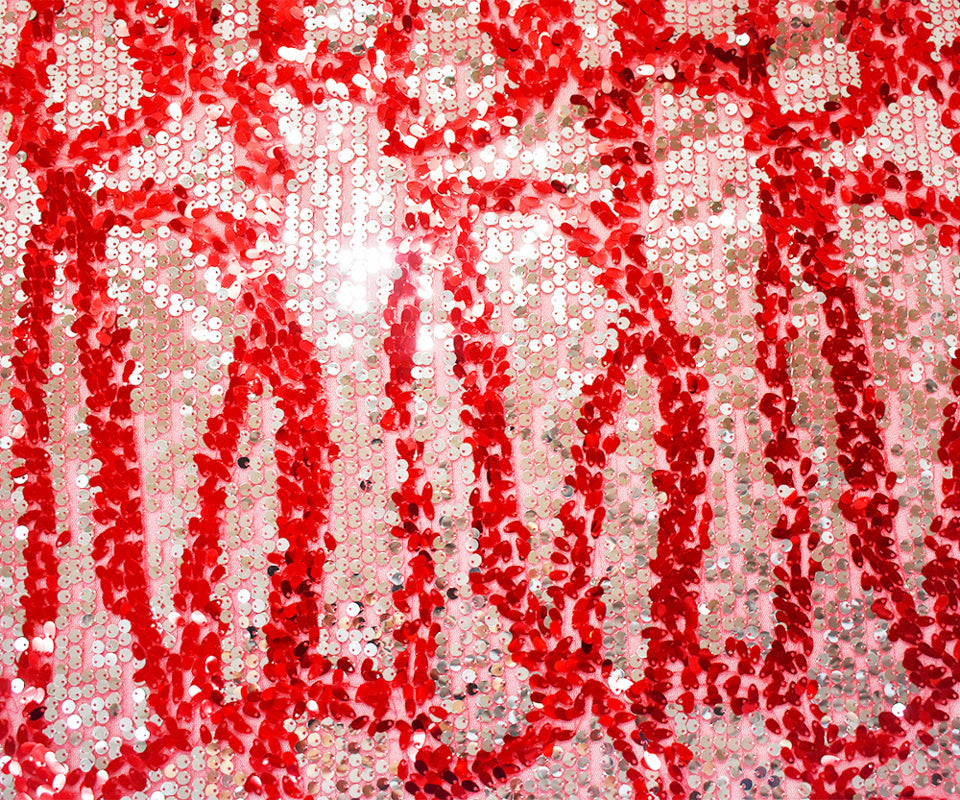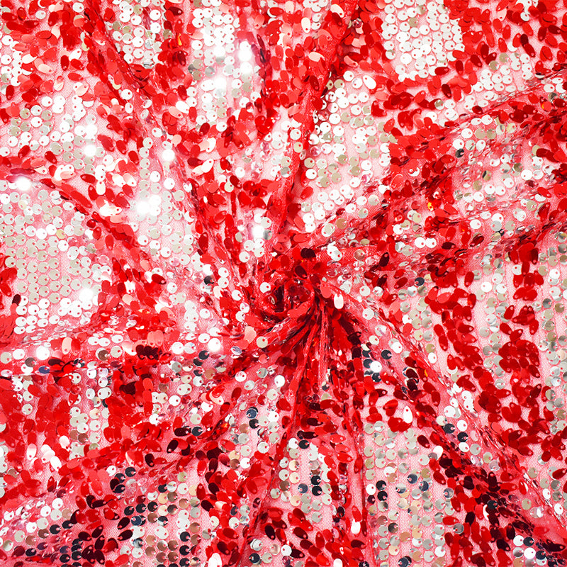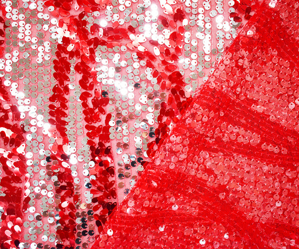 Red-Metallic Nylon-Poly Silver Abstract Sequined Mesh Tulle Fabric