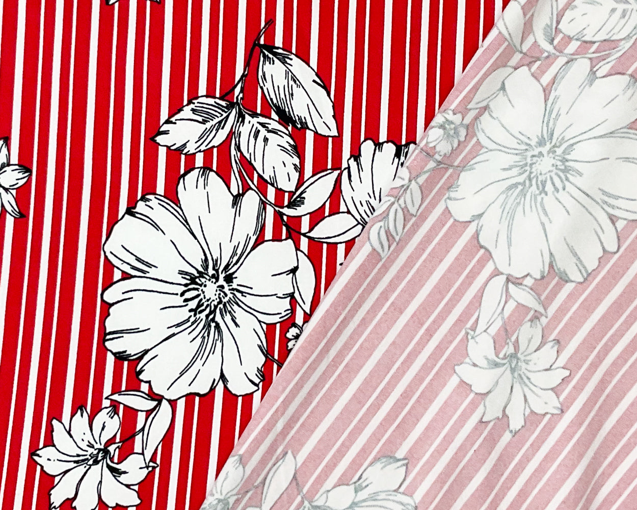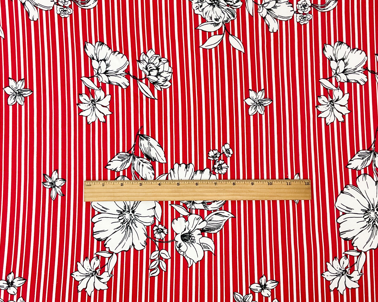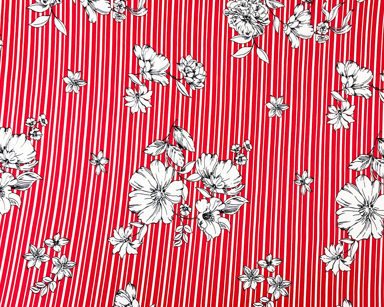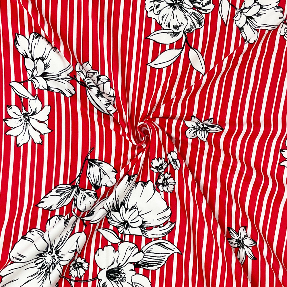 Red-Multi Poly Stretch Spandex Floral Stripe Print DB Jersey Knit Fabric