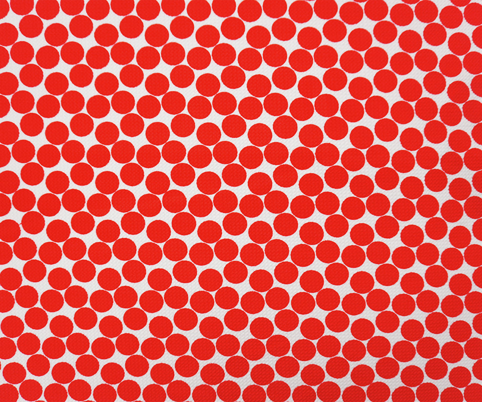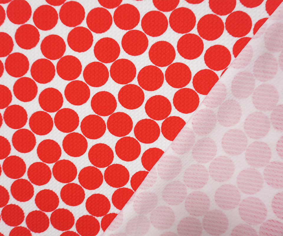 Red-White Poly Dot Print Liverpool Double Knit Fabric