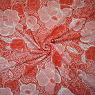 -Red-White Poly Floral Printed Georgette Woven Fabric