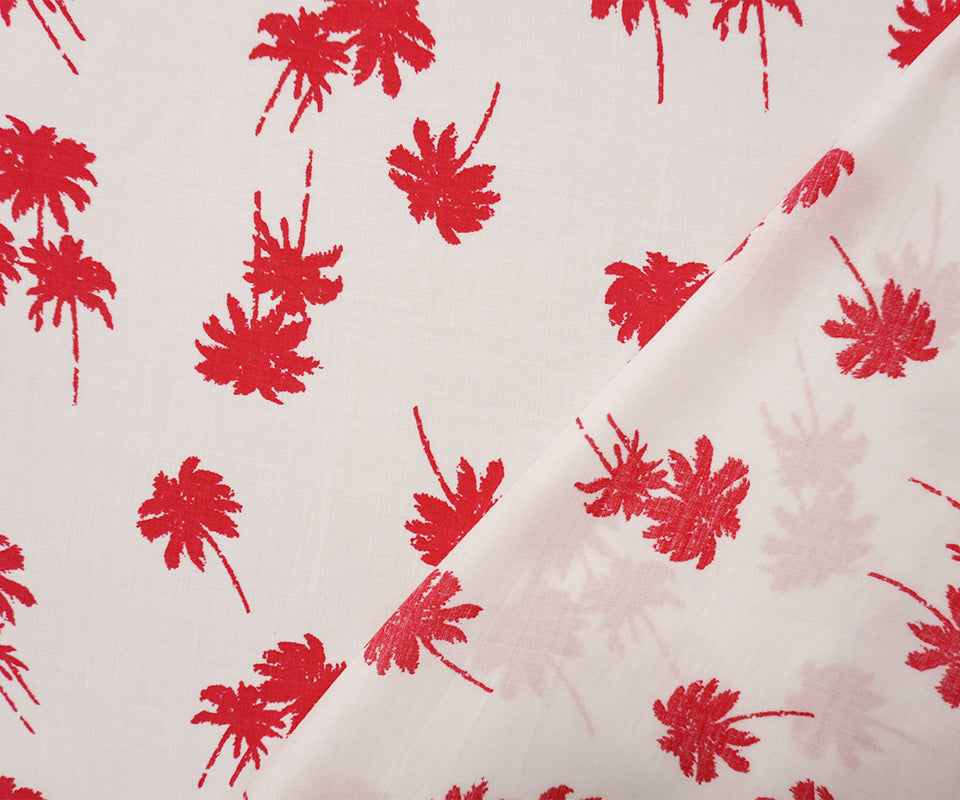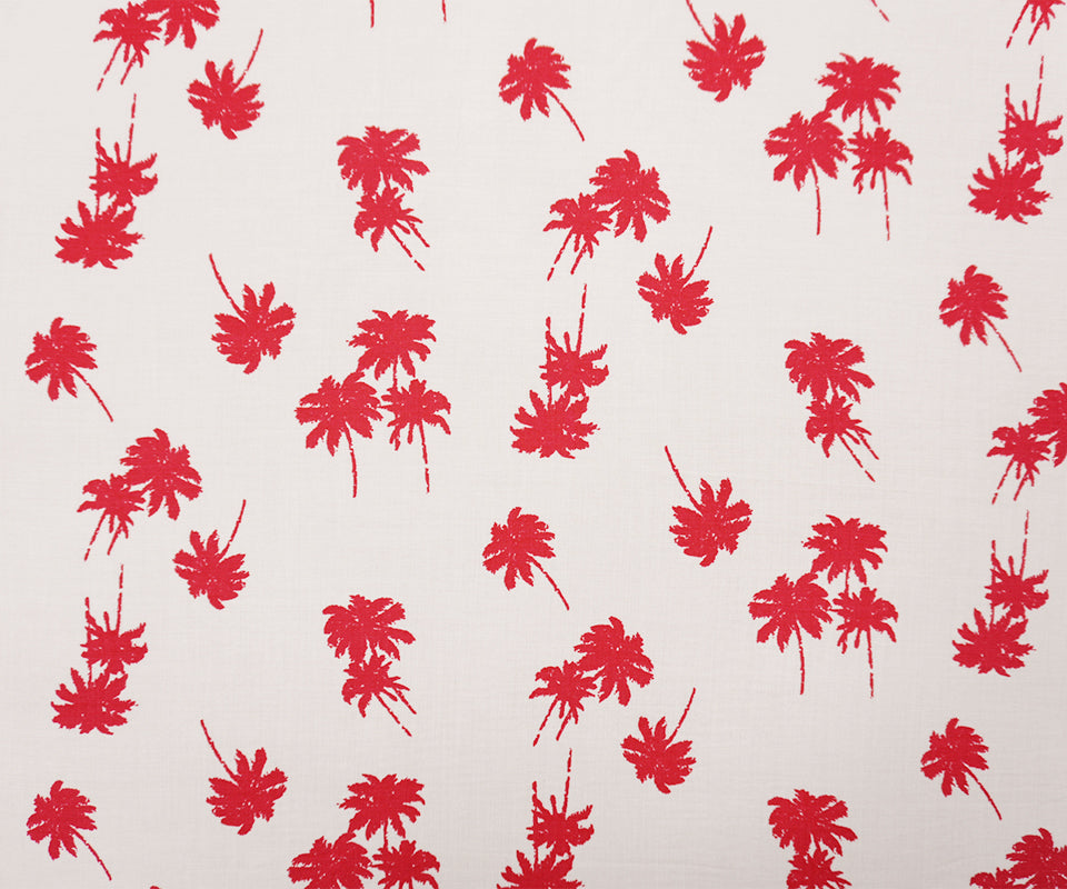 Red-White Rayon Palm Tree Printed Voile Woven Fabric
