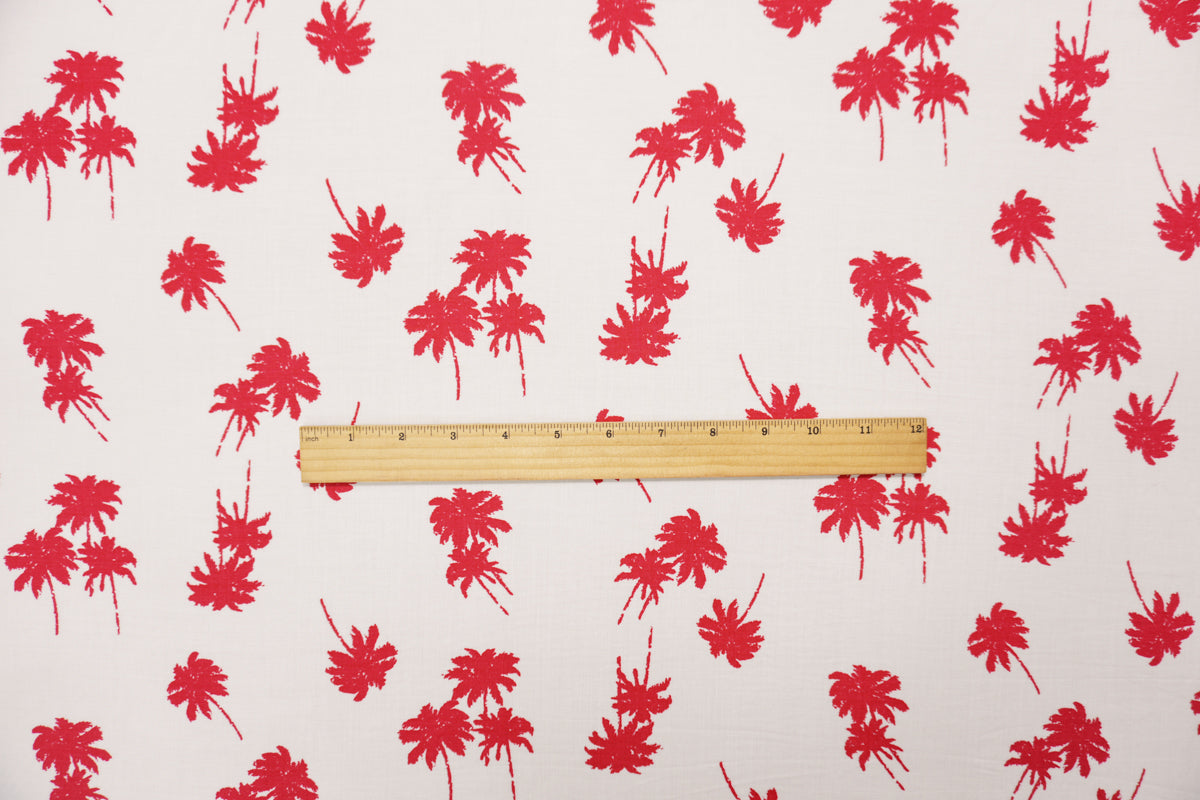 -Red-White Rayon Palm Tree Printed Voile Woven Fabric