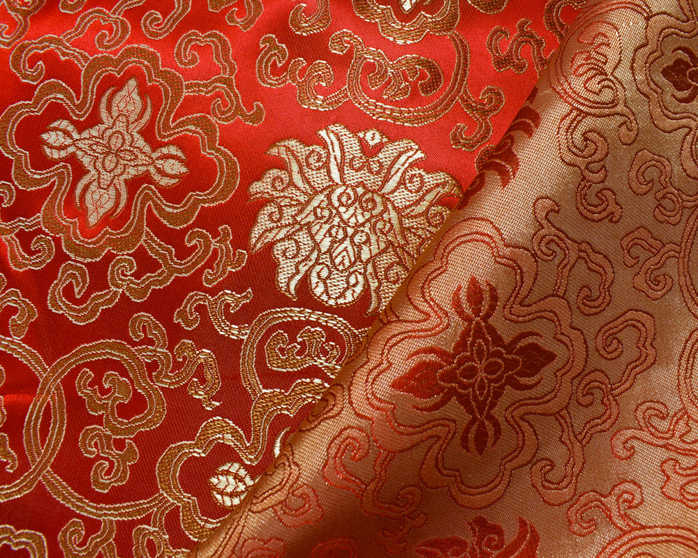 Red-Yellow-Multi Polyester Floral Crest Vine Chinese Brocade Woven Fabric