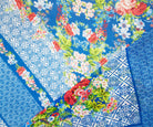 -Teal Blue-Orange Multi Poly Floral Border Printed Chiffon Woven Fabric