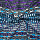 Turquoise-Purple-Multi Poly Aztec Border Printed Charmeuse Woven Fabric