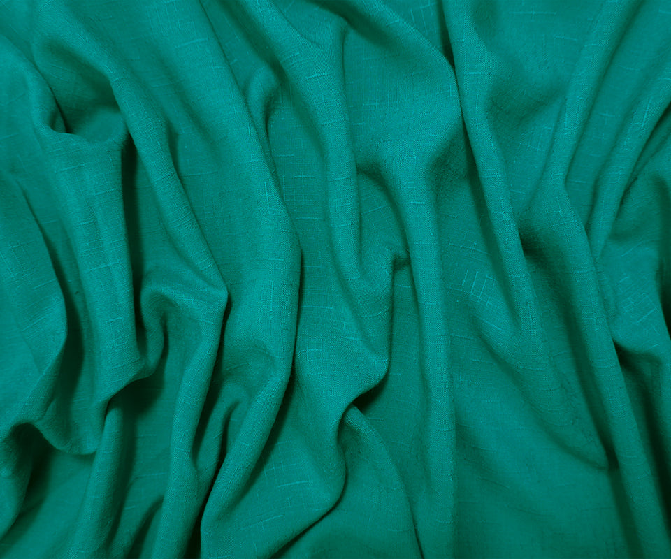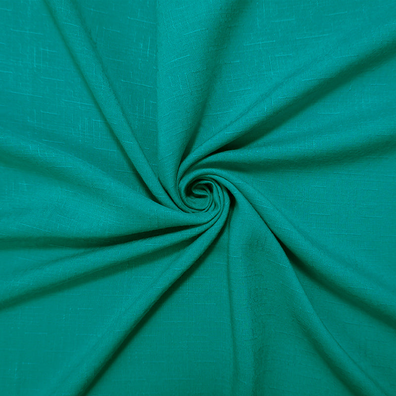 Turquoise Rayon Solid Cross Hatch Linen-Look Challis Woven Fabric
