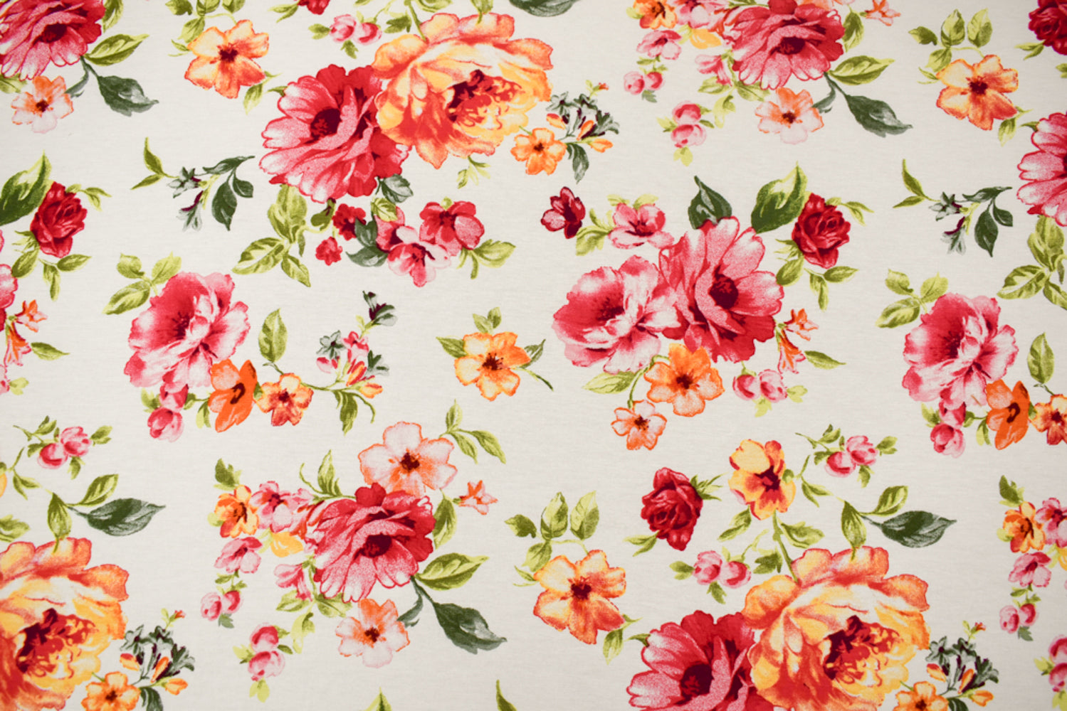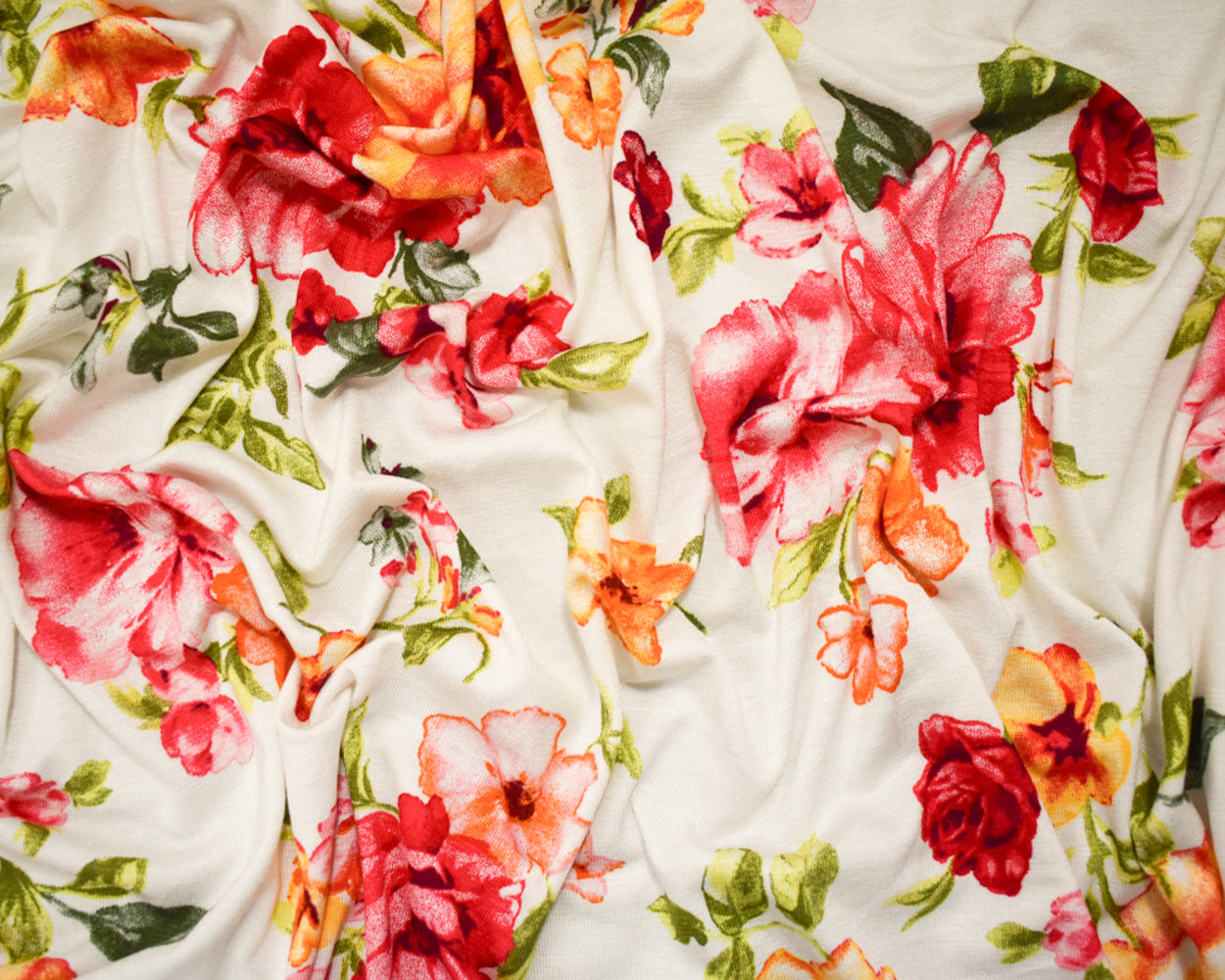 White-Pink-Multi Rayon Modal Floral Printed Stretch Spandex Jersey Knit Fabric
