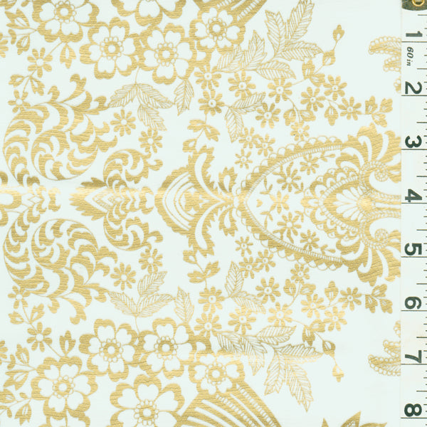 Gold Metallic Floral Print on White Oilcloth Fabric