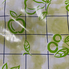 Green Fruit Print with Navy Blue Check Print and Yellow Green Shading on White Oilcloth Fabric