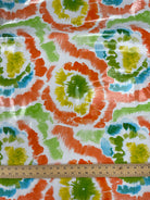 Orange Multi Tie Dye Print on White Oilcloth Fabric
