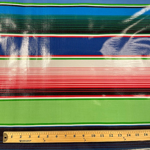 Royal Blue Multi Stripe Oilcloth Fabric - Reorderable