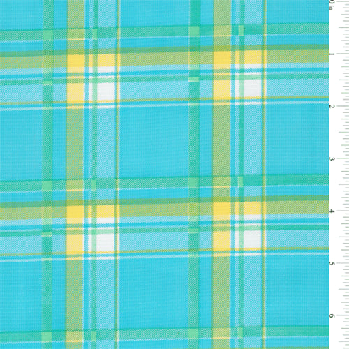 Turquoise, Yellow, White, and Green Plaid Oilcloth Fabric