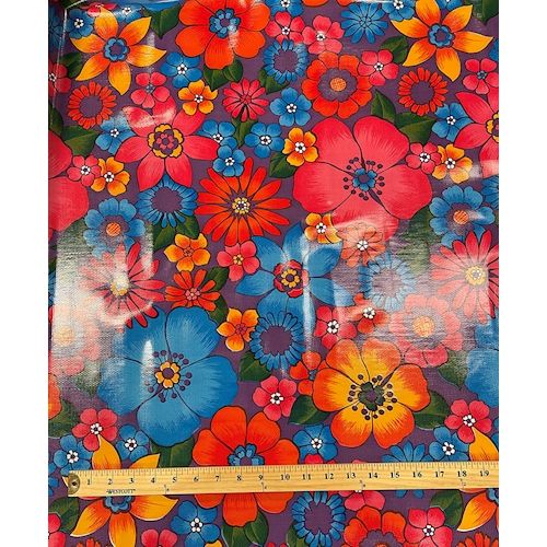Oilcloth is a fabric, often made of vinyl or PVC, that is waterproof, easy to clean, and durable. It has a shiny, smooth surface and doesn't fray when cut. Commonly used for tablecloths, aprons and placemats, tote bags, lunch bags, and other types of carriers or luggage, shower curtains and blackout drapes. Shop our selection of bright colors and fun designs and modern prints.