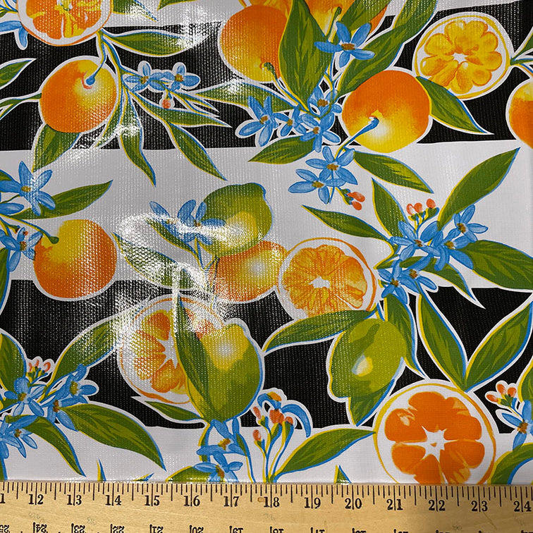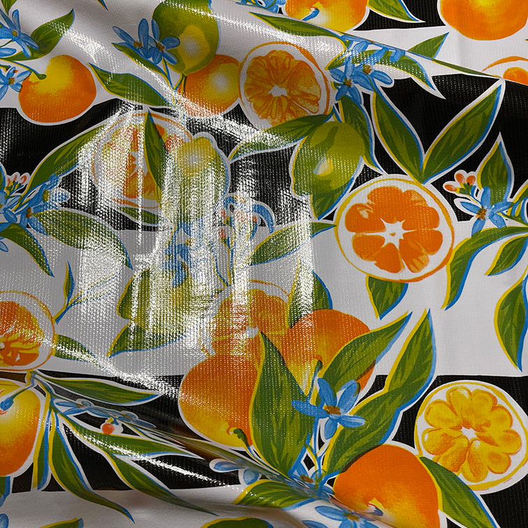 Oilcloth is a fabric, often made of vinyl or PVC, that is waterproof, easy to clean, and durable. It has a shiny, smooth surface and doesn't fray when cut. Commonly used for tablecloths, aprons and placemats, tote bags, lunch bags, and other types of carriers or luggage, shower curtains and blackout drapes. Shop our selection of bright colors and fun designs and modern prints.