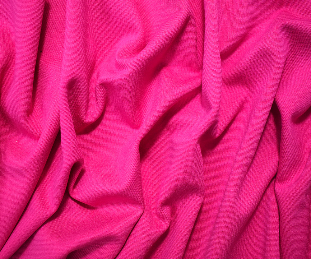 Hot Pink Rayon-Nylon Solid Stretch Spandex Ponte De Roma Knit Fabric