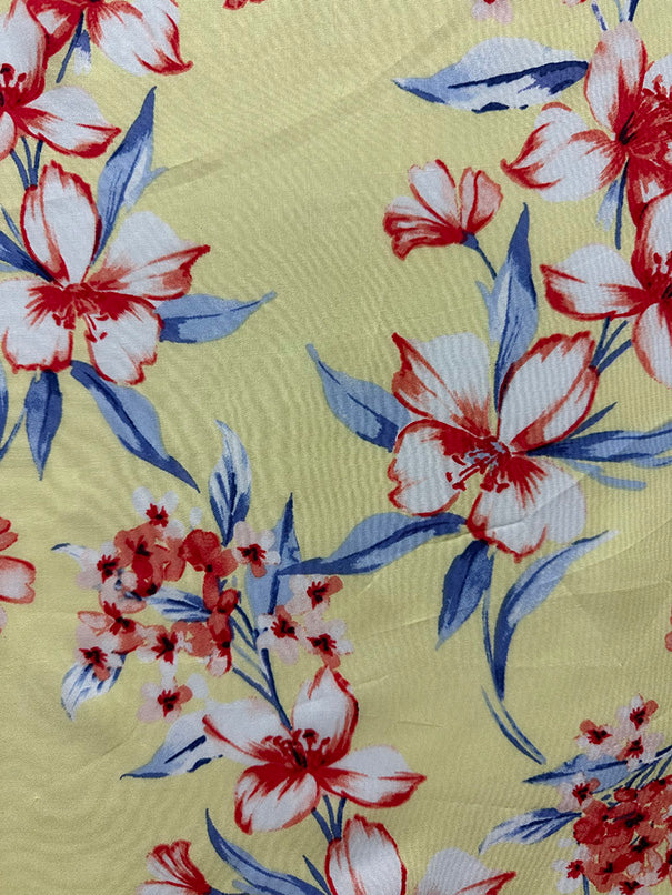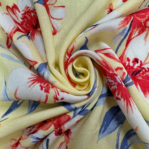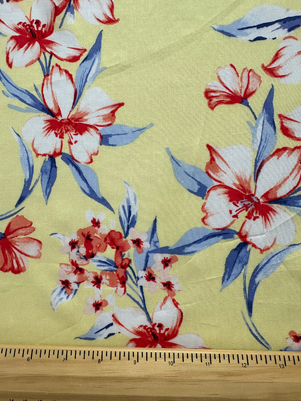 Bright Yellow Multi Floral Print Woven Challis Fabric