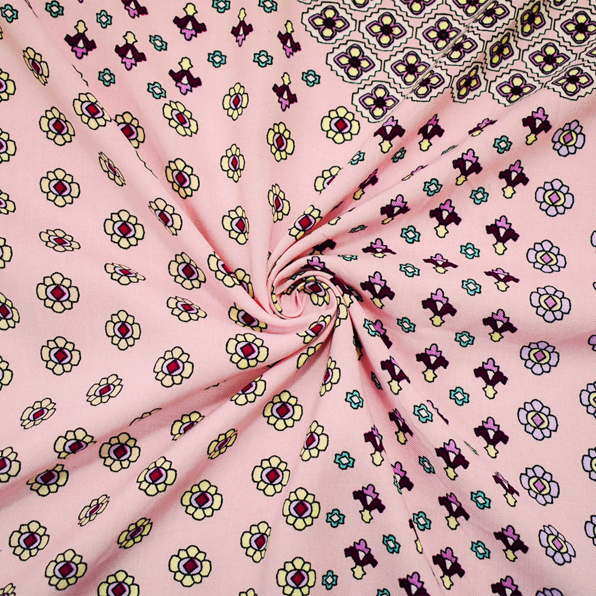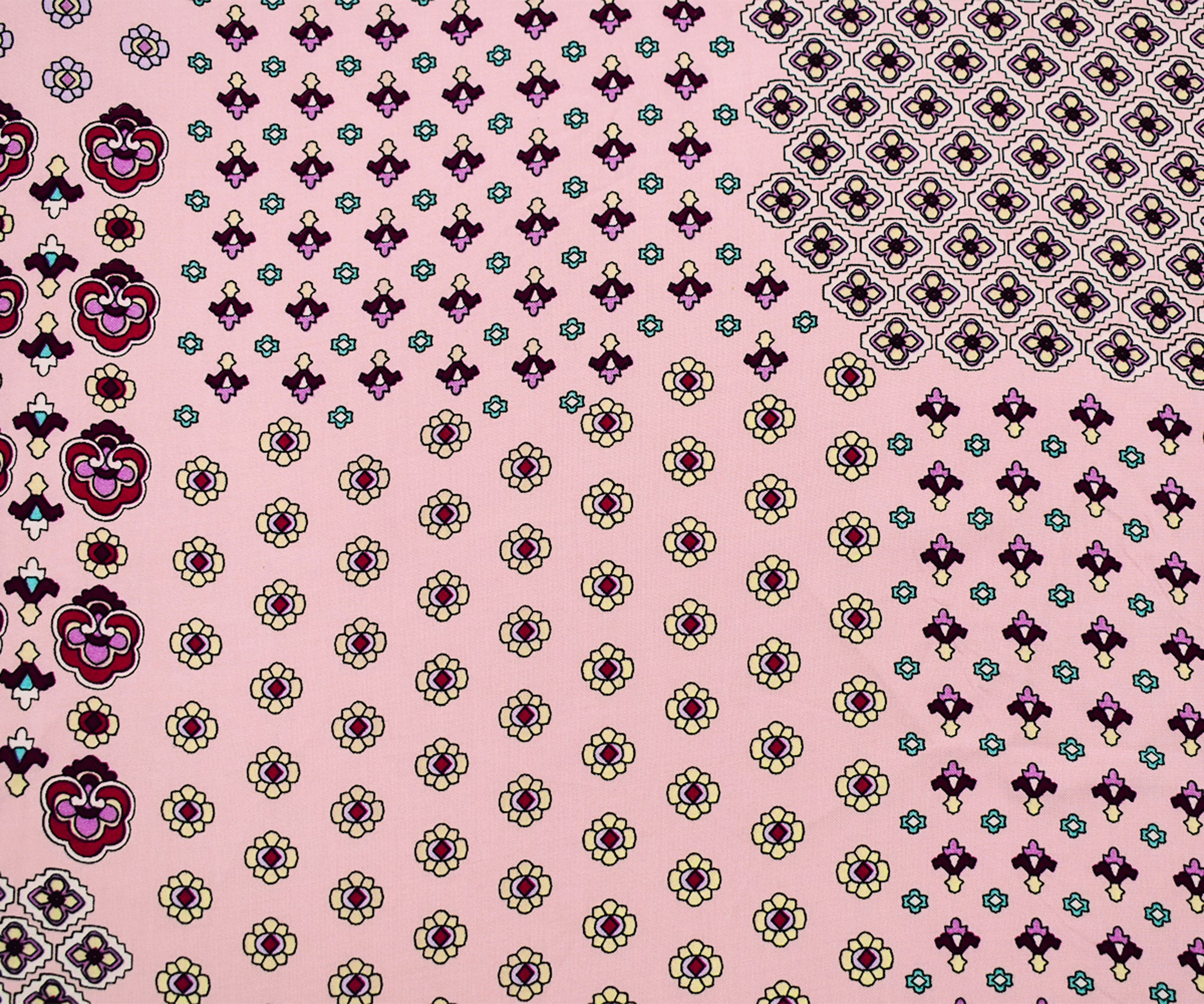 Light Pink-Multi Abstract Patchwork Printed Challis Woven Fabric
