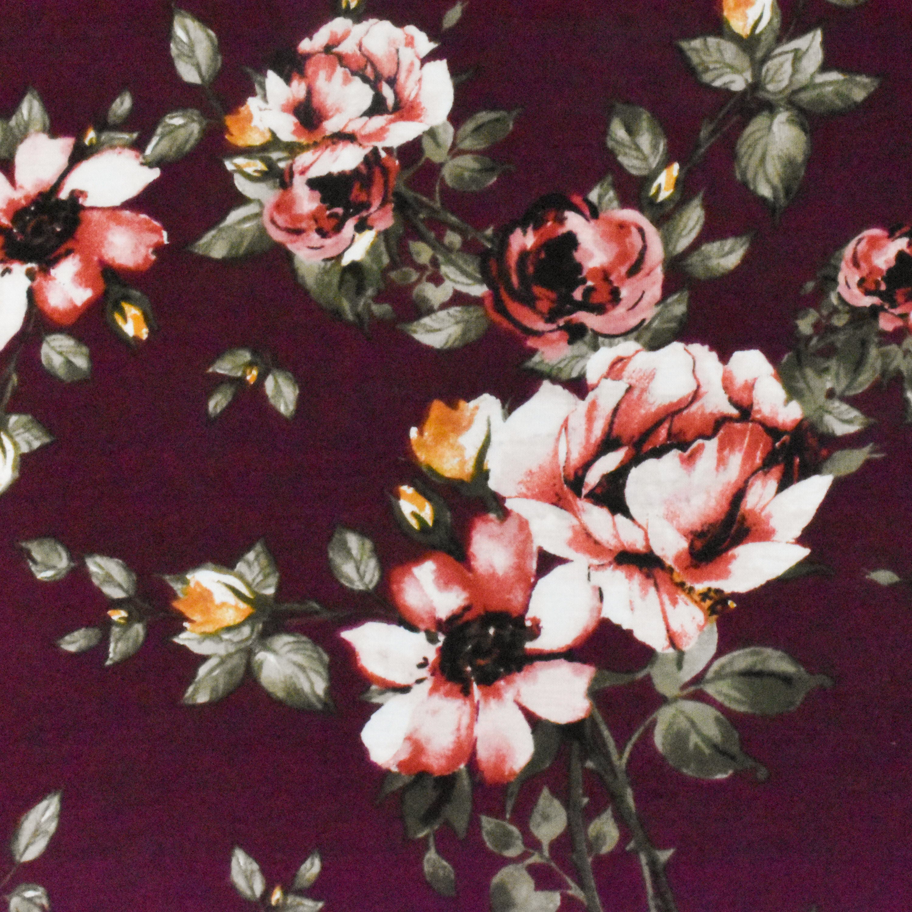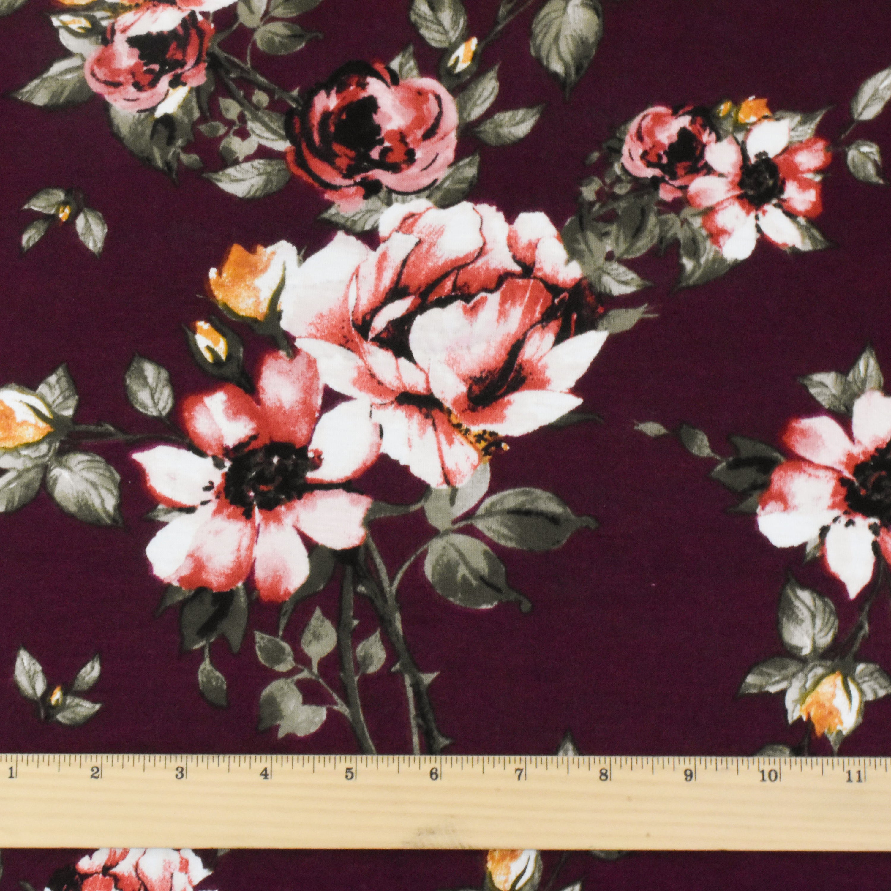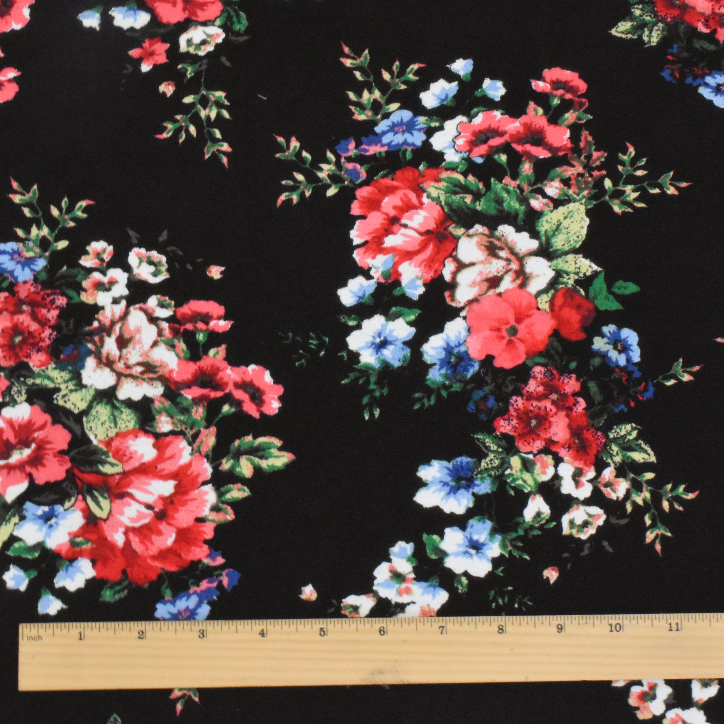 Rayon Spandex Knit Fabric - A soft, lightweight, and stretchy fabric blend, typically composed of 95% rayon and 5% spandex, known for its comfortable drape, breathability, and 4-way stretch, making it suitable for various garments. Available in many gorgeous on-trend prints!