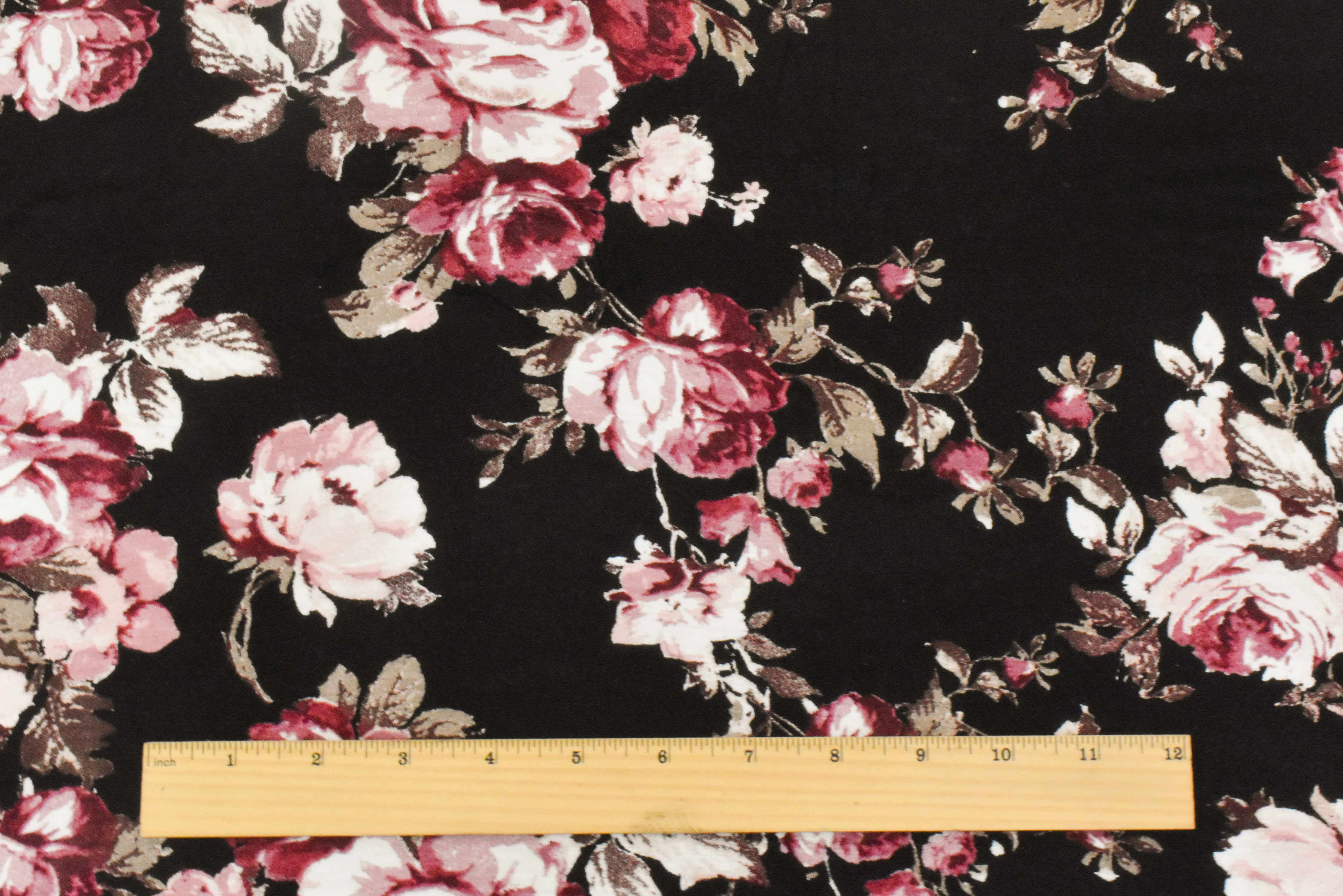 Dark Maroon-Black-Multi Floral Printed Stretch Rayon Jersey Knit Fabric