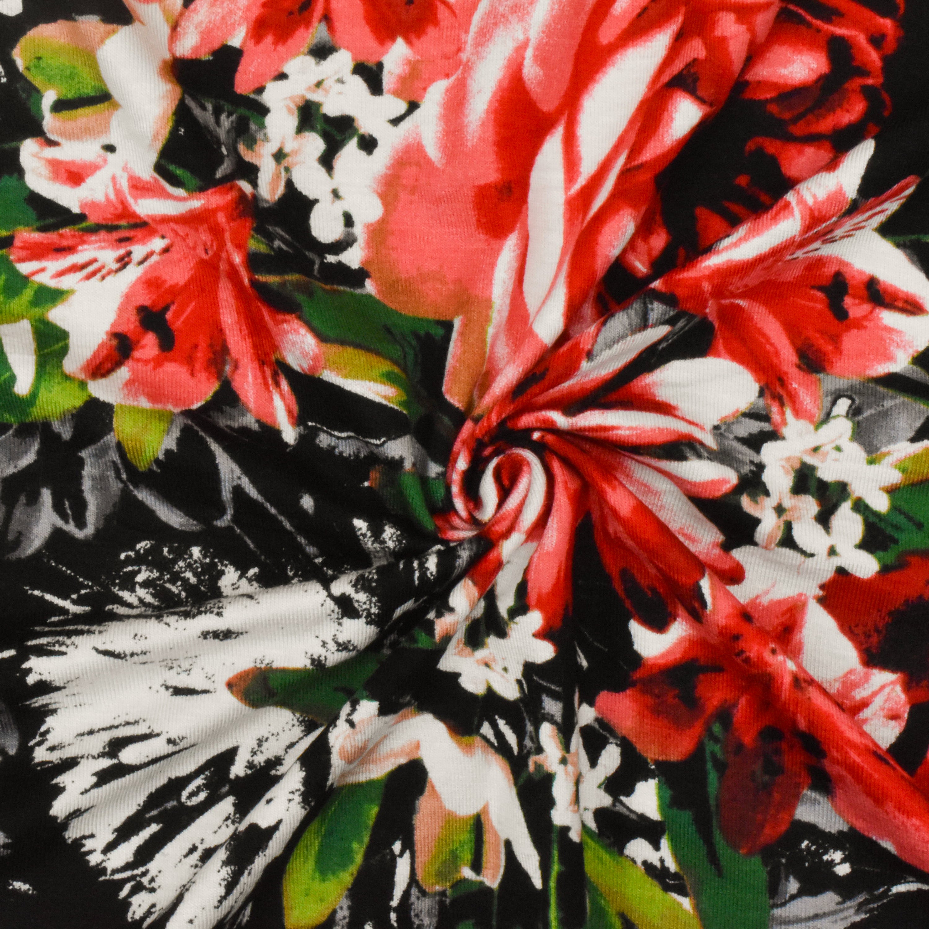 Pure Red-Black-Multi Floral Printed Stretch Rayon Jersey Knit Fabric