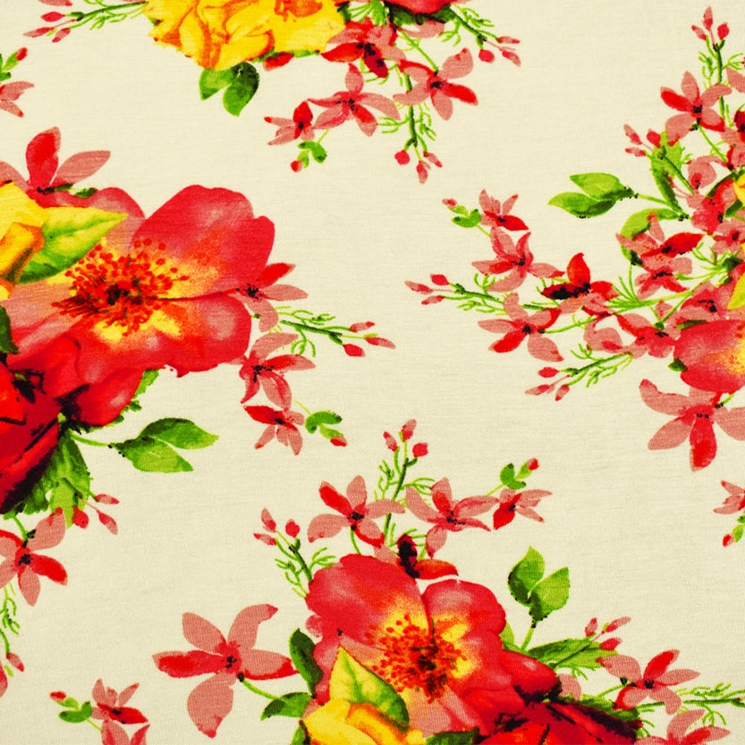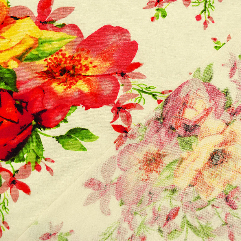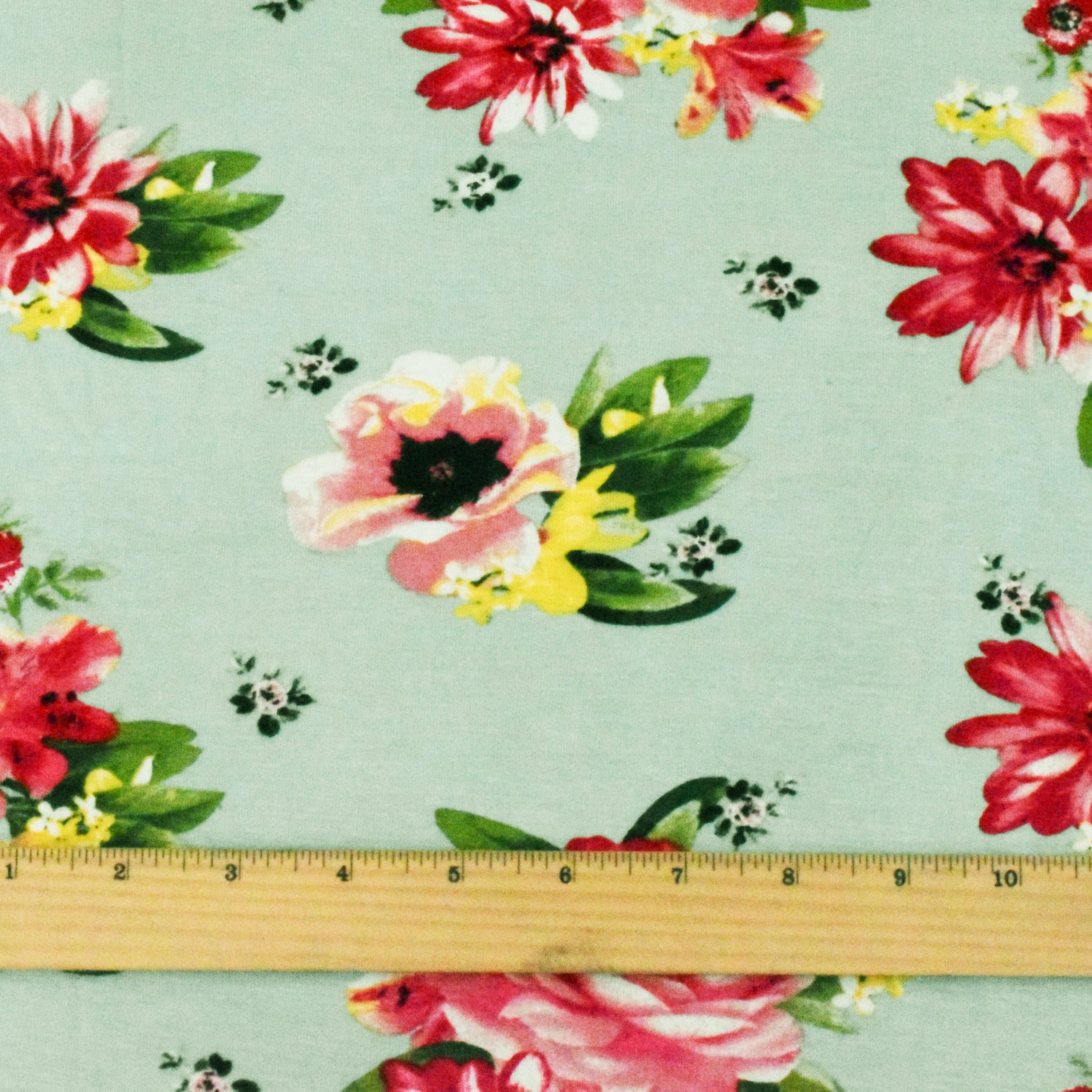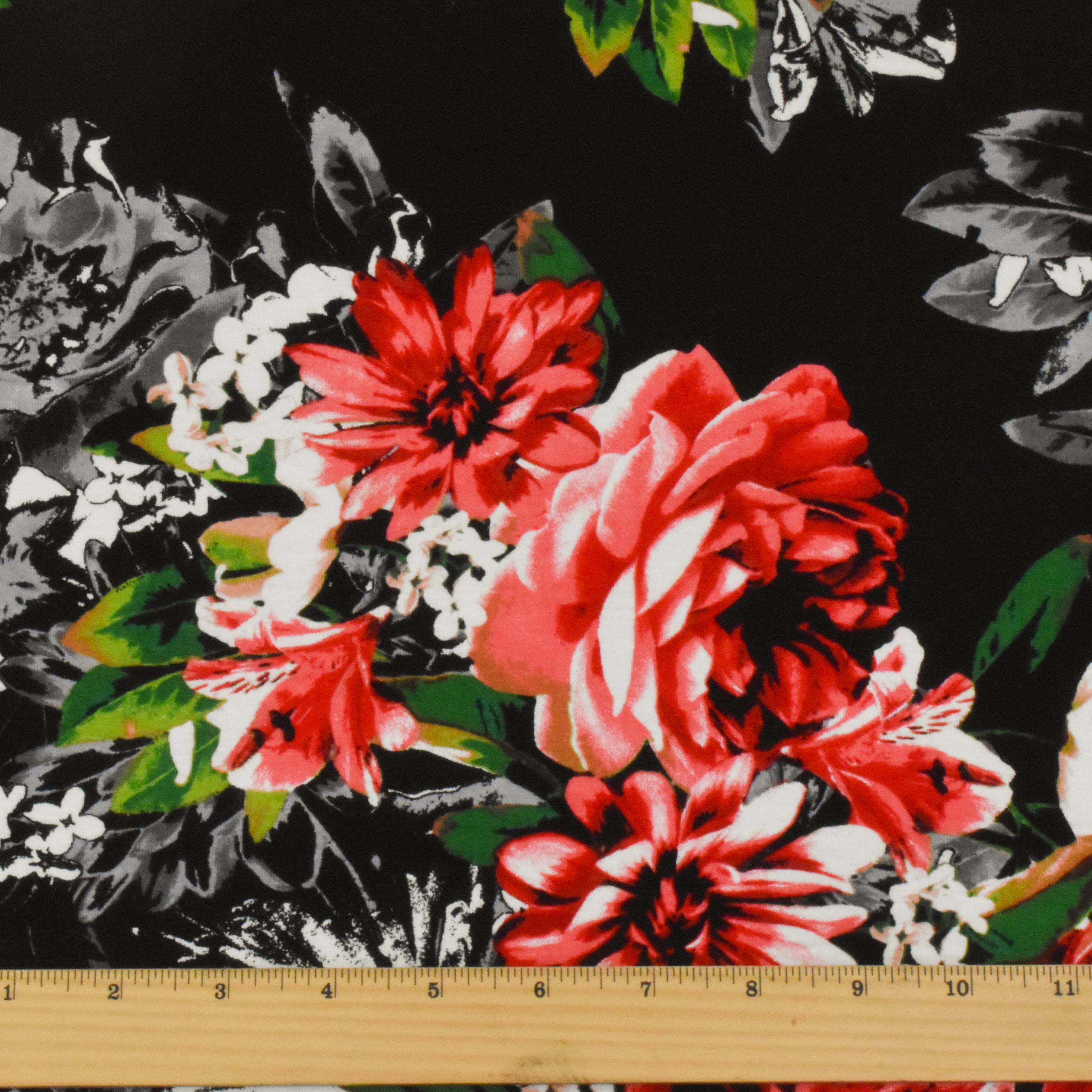 Rayon Spandex Knit Fabric - A soft, lightweight, and stretchy fabric blend, typically composed of 95% rayon and 5% spandex, known for its comfortable drape, breathability, and 4-way stretch, making it suitable for various garments. Available in many gorgeous on-trend prints!