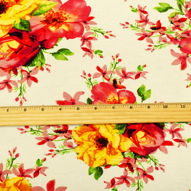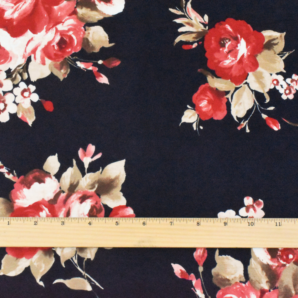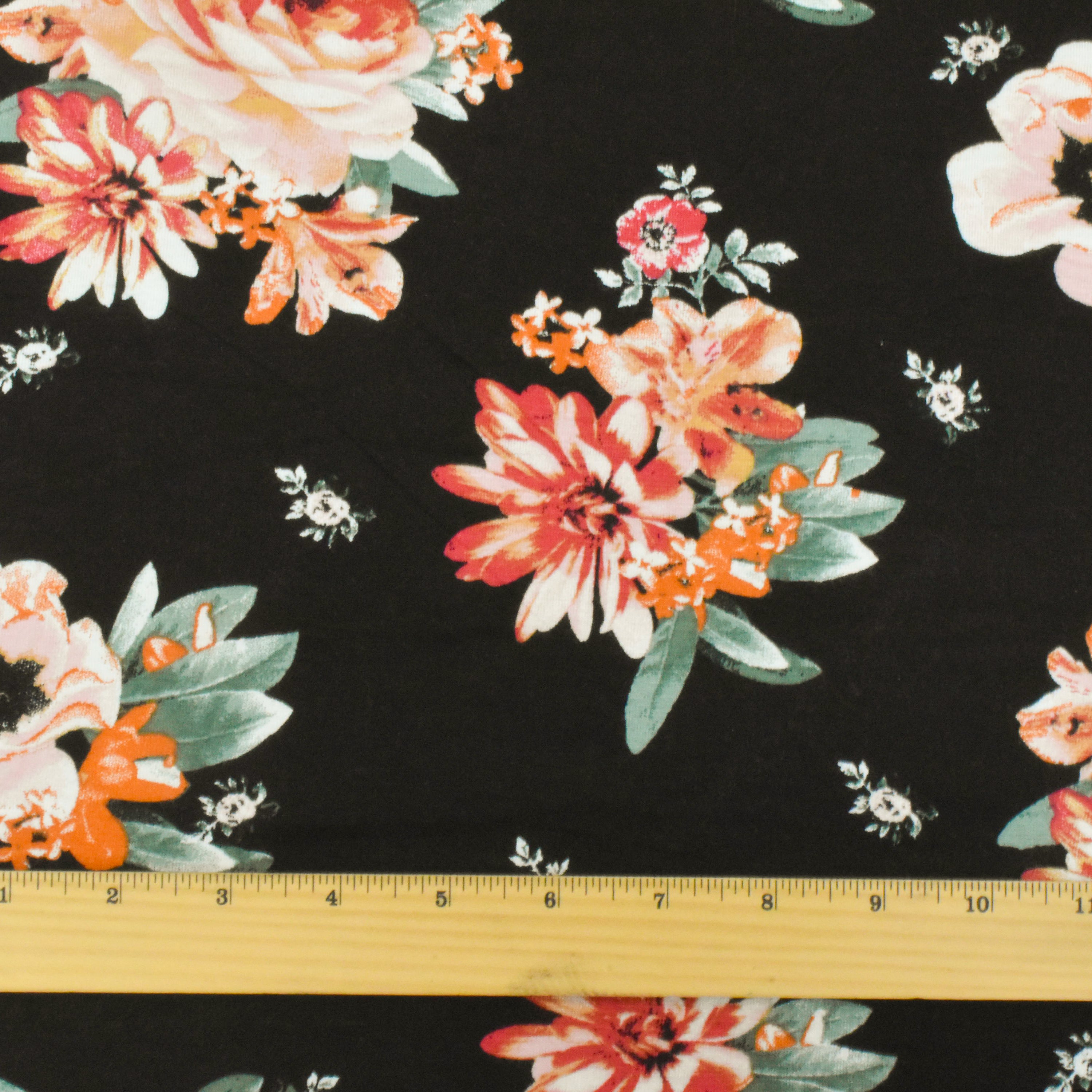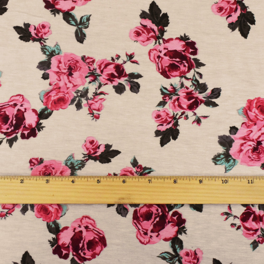 Rayon Spandex Knit Fabric - A soft, lightweight, and stretchy fabric blend, typically composed of 95% rayon and 5% spandex, known for its comfortable drape, breathability, and 4-way stretch, making it suitable for various garments. Available in many gorgeous on-trend prints!