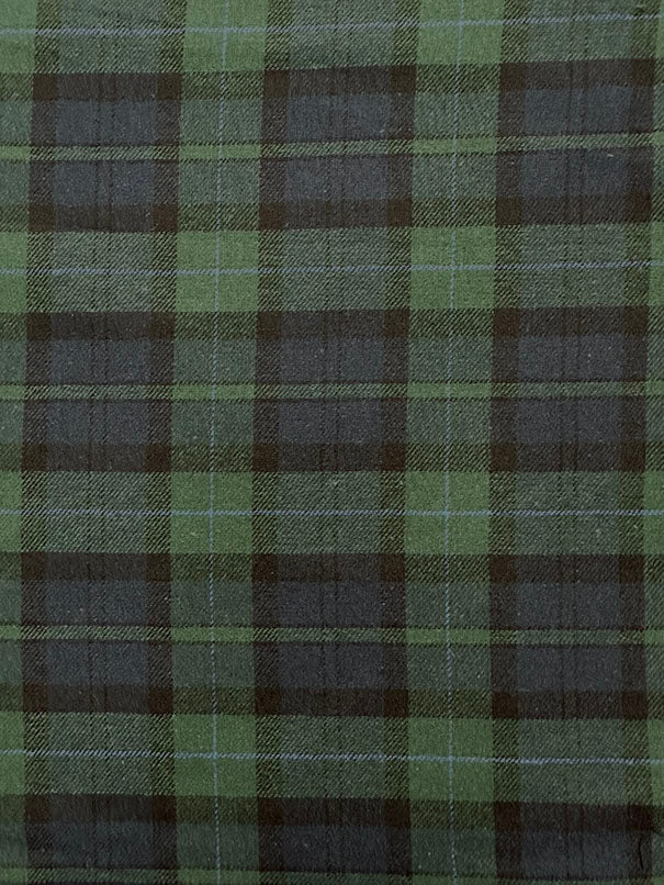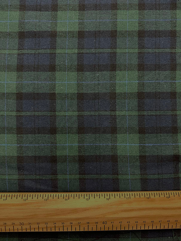 -Green, Blue, & Black Blackwatch Plaid Light Weight Single Sided Yarn Dyed Flannel Fabric