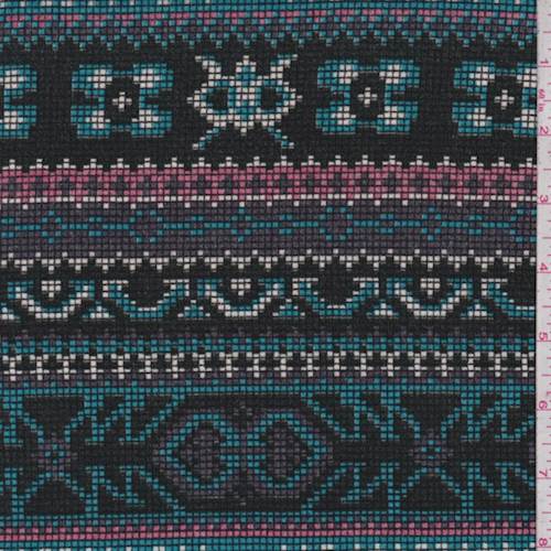 1 1/4 YD PC-Black/Aqua/Pink Pixelated Stripe Crepe Knit Fabric