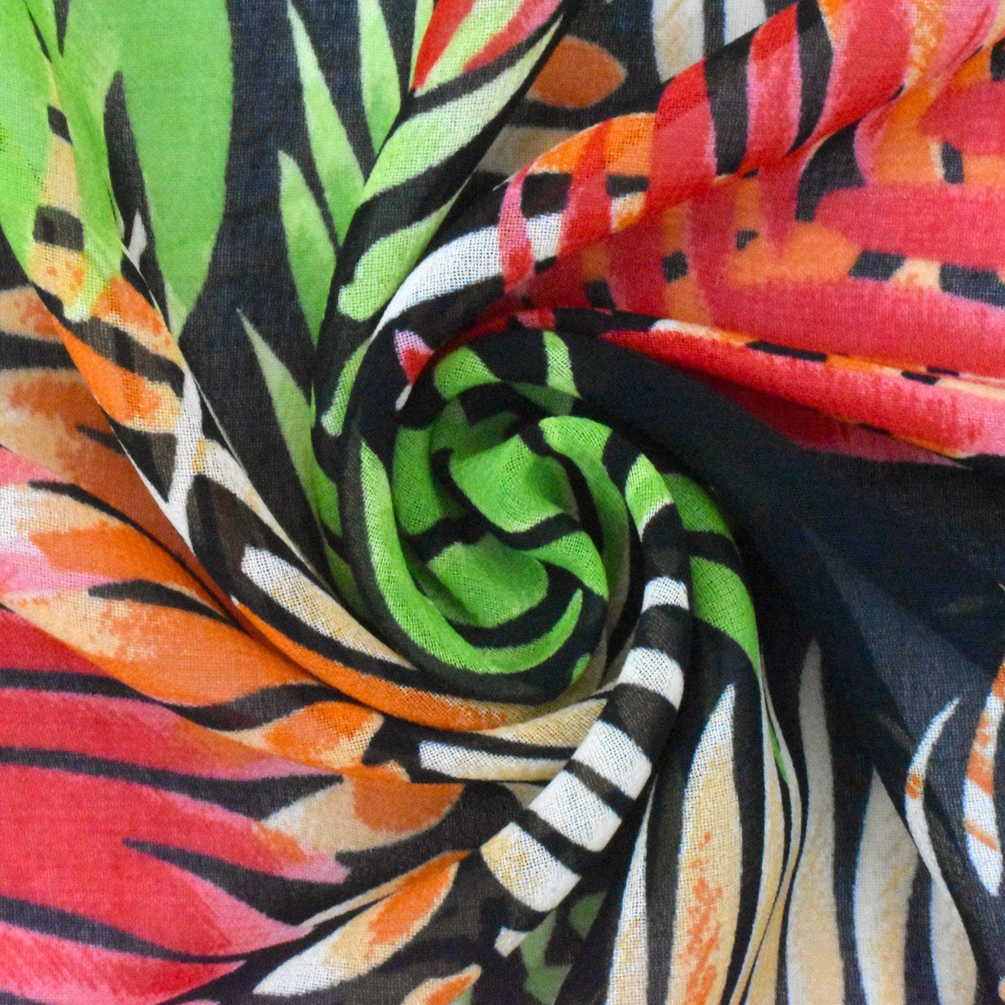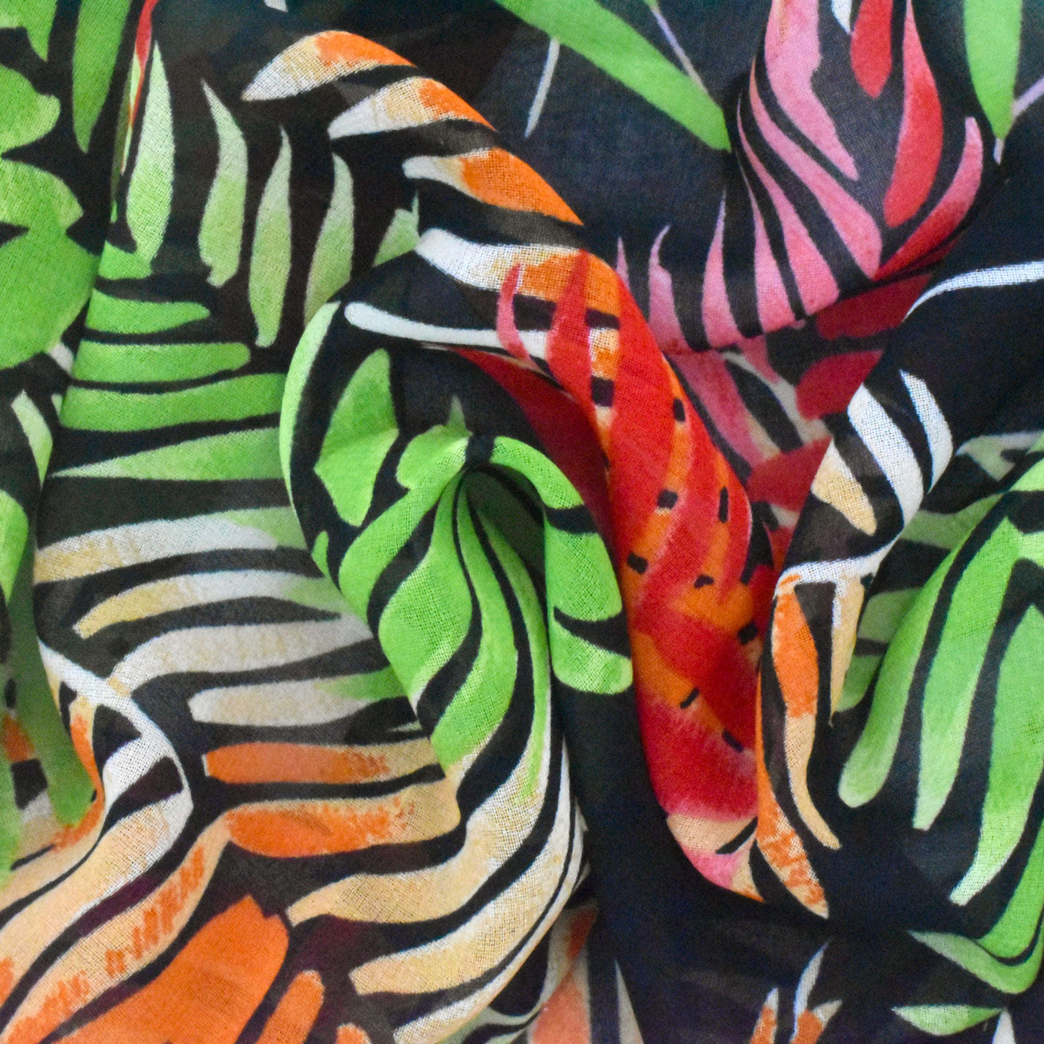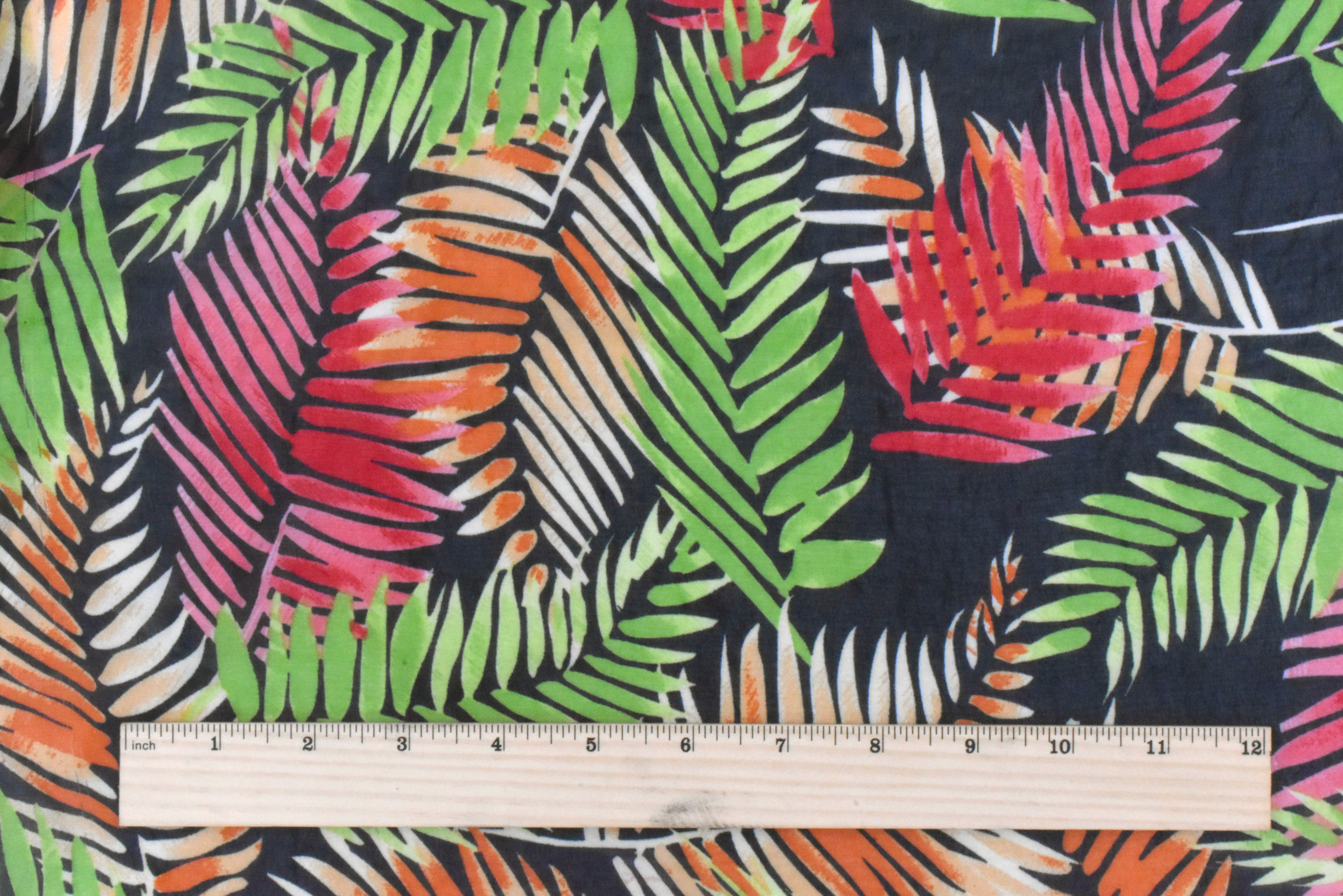 1 1/4 YD PC-Classic Black-Green-Multi Palm Leaves Printed Poly Chiffon Woven Fabric