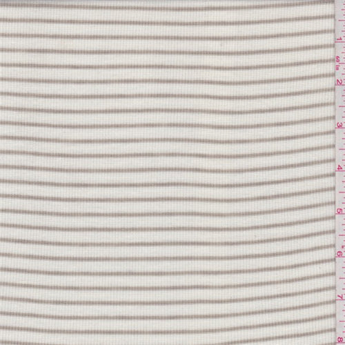 1 1/8 YD PC-Ivory/Dark Tan Stripe Rib Jersey Knit Fabric