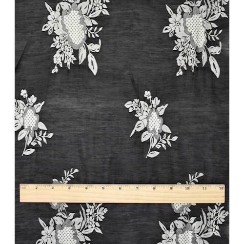 1 3/4 YD PC-Black/White Novelty Floral Jacquard Woven Fabric