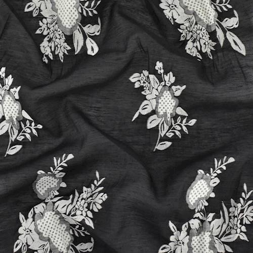 1 3/4 YD PC -This beautiful sheer jacquard woven features a novelty textured embroidered-like floral pattern