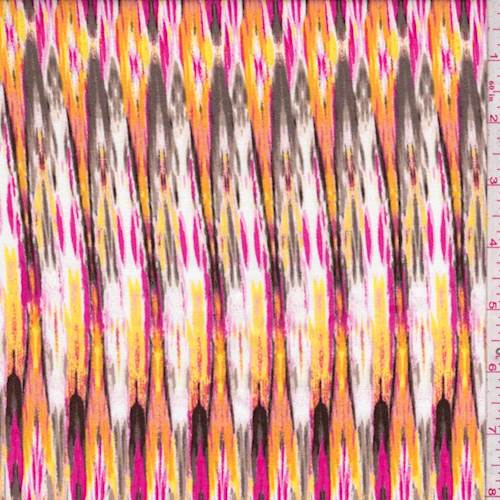 1 3/4 YD PC-Tangerine/Pink Flamestitch Rayon Challis Fabric