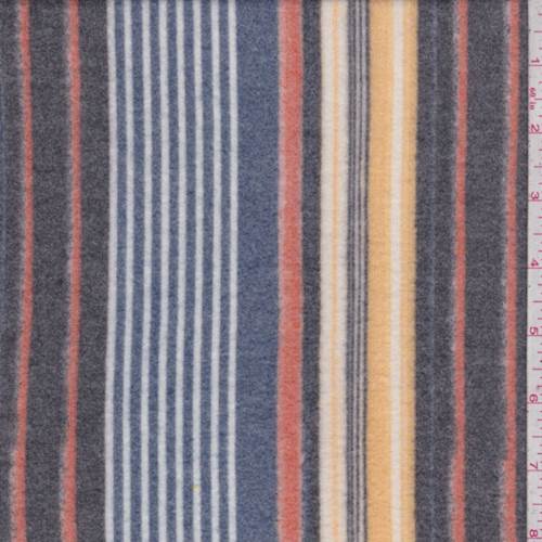 1 7/8 YD PC-Denim Blue/Charcoal/Yellow Stripe Faux Cashmere Knit Fabric