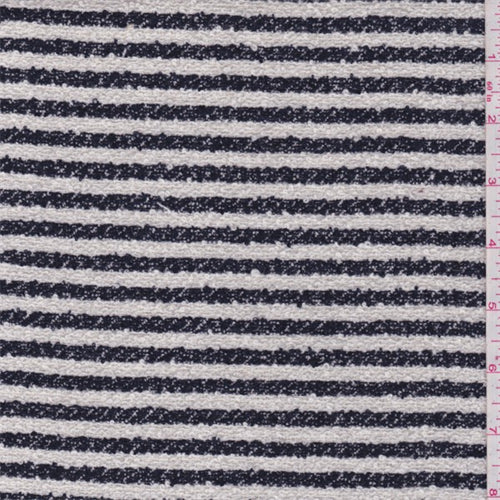 1 7/8 YD PC-White/Black Stripe Boucle Suiting Fabric