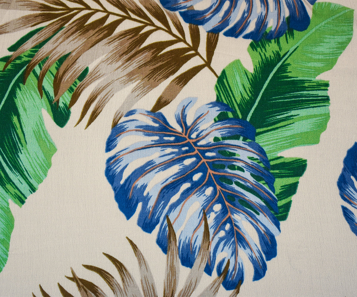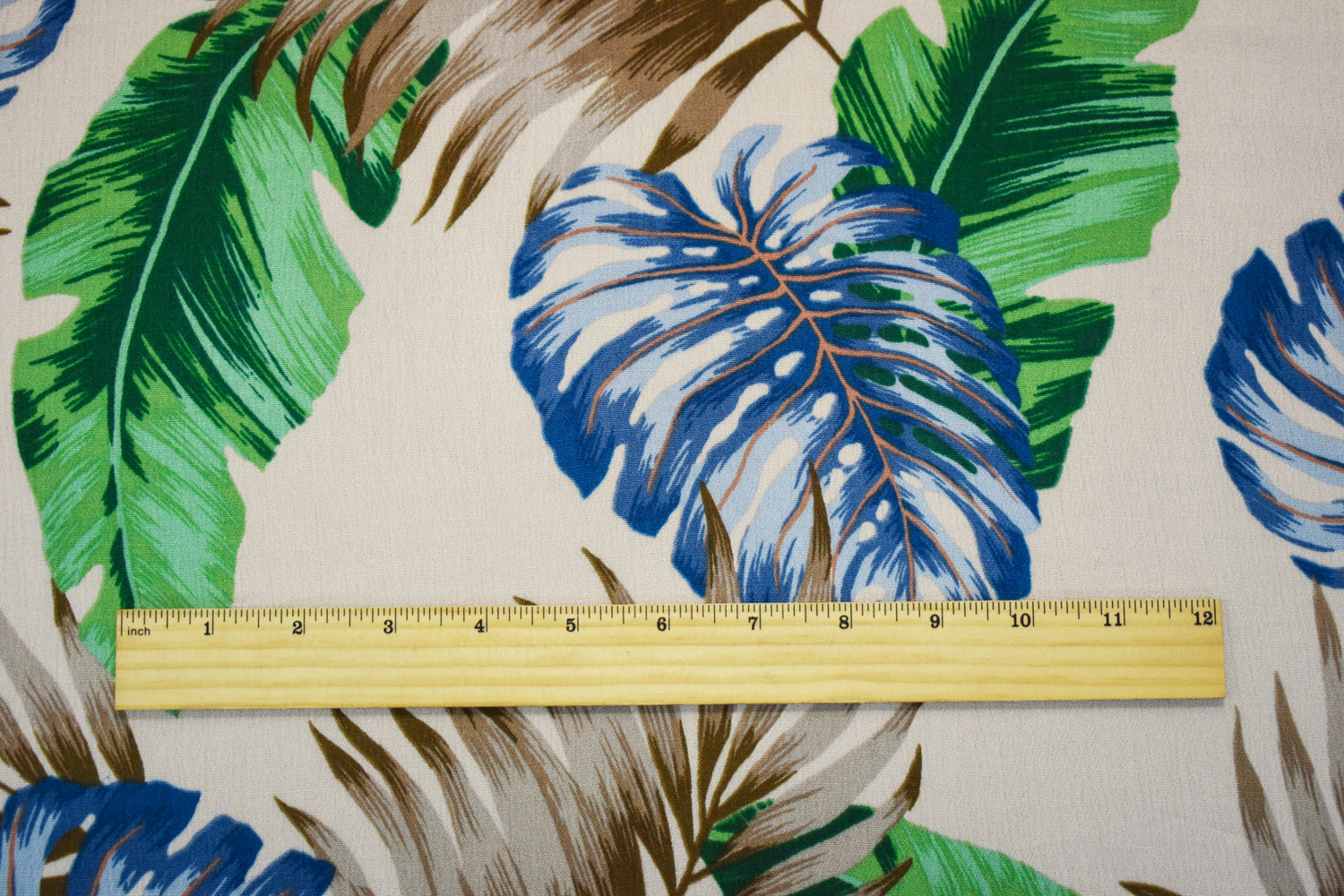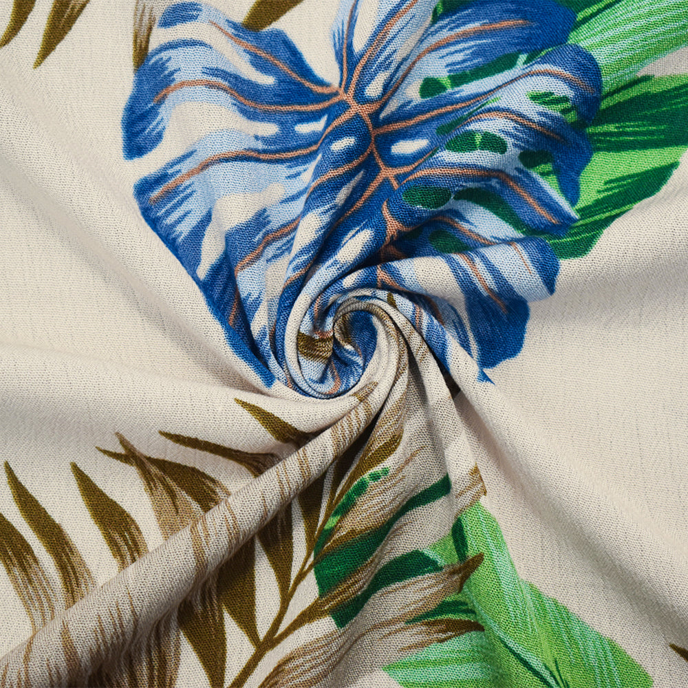 1 YD PC-Beige-Blue-Multi Cotton Leaves Printed Crinkled Gauze Woven Fabric