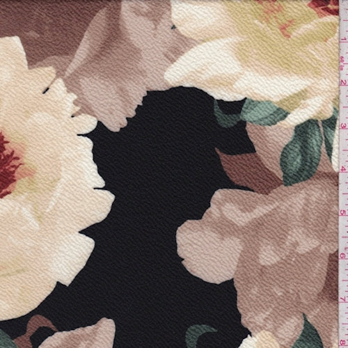 1 YD PC-Black/Beige Multi Large Floral Textured Liverpool Knit Fabric