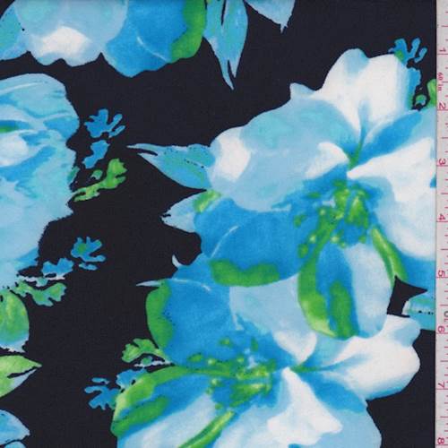 1 YD PC-Navy/Aqua Modern Floral Scuba Knit Fabric