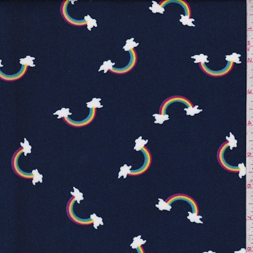 1 YD PC-Navy Rainbow Double Brushed Jersey Knit Fabric