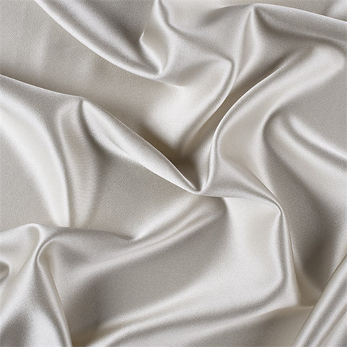 Top of the line silk with a high sheen, similar to charmeuse only heavier and more luxurious. Top side is shiny; back side which is crepe has a fine rib and pebble look and feel. Both sides can be used for textural effects. A superb choice for bridal or the most elegant evening wear.