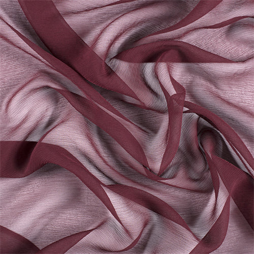 Solid Wine Crinkled Silk Chiffon Fabric from our Runway Silk Collection