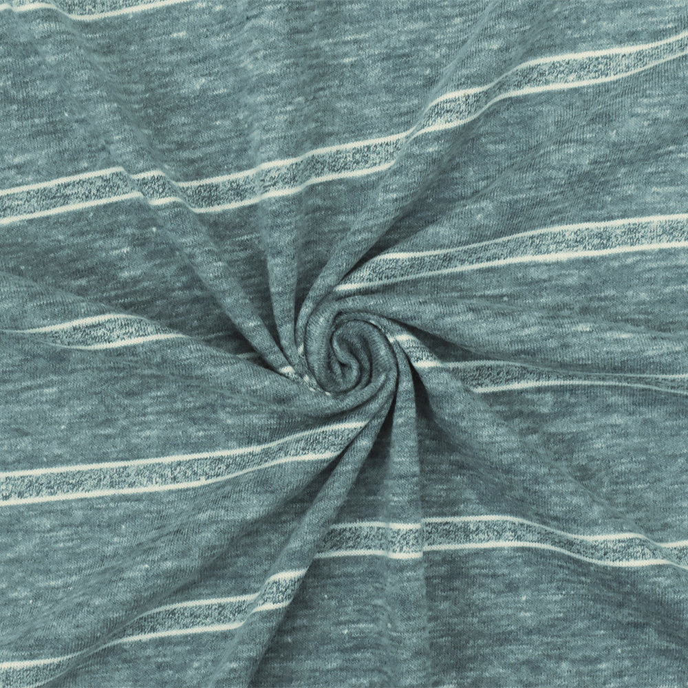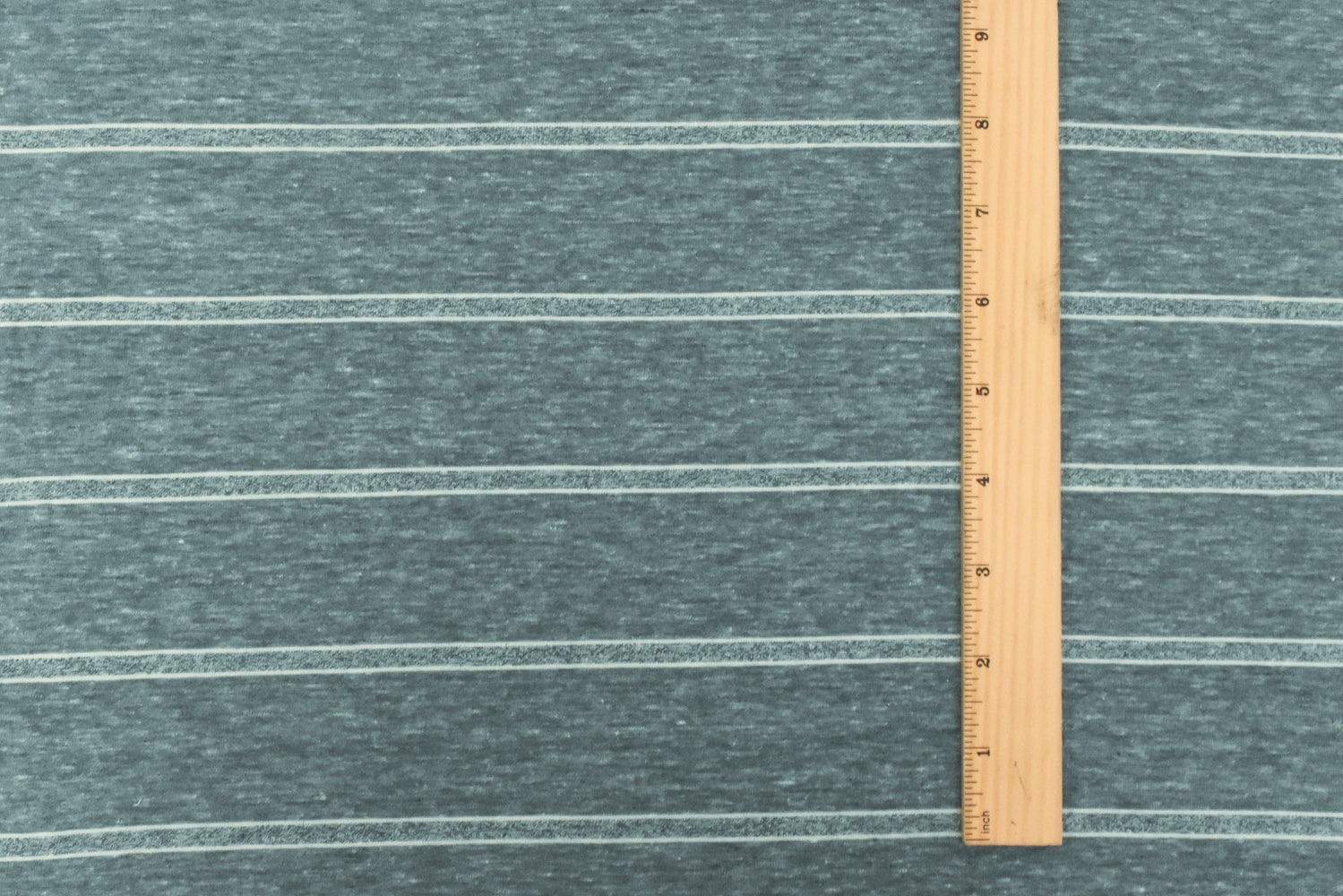 2 1/2 YD PC-Dusty Teal-Ivory Stripe Stretch Jersey Knit Fabric