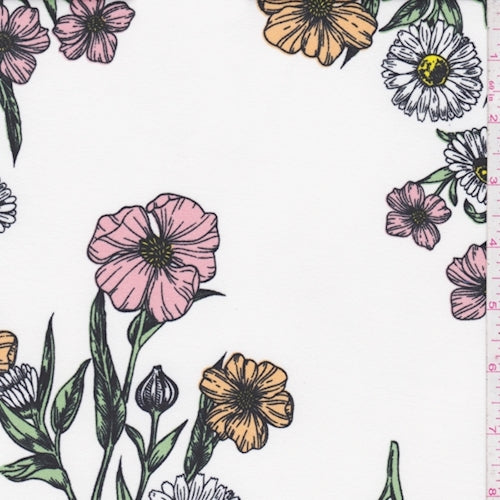 2 1/2 YD PC-Ivory Daisy Floral Double Brushed Jersey Knit Fabric