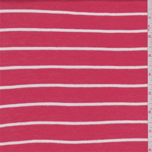 Lightweight rayon jersey knit with a subtle sheen. Yarn dyed horizontal stripes. Exceptionally soft hand/feel with a nice drape. Suitable for knit tops. Hand wash cold or dry clean.