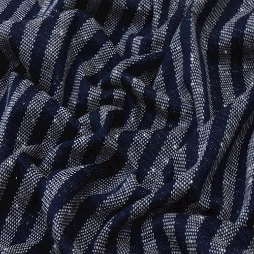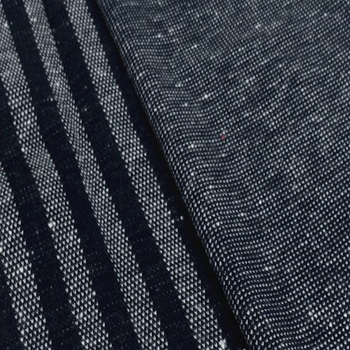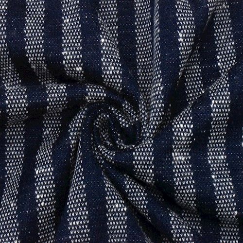 2 1/4 YD PC-Navy Blue/ White Texture Striped Double Knit Fabric